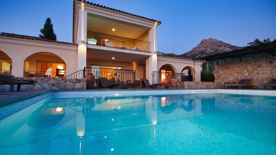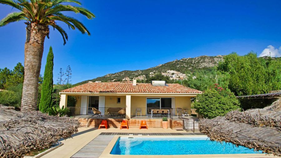 Villa indépendante, 4 chambres, 4 salles de bain, piscine privative, terrasse, cuisine d'été, jardin arboré et très belle vue sur la baie de Calvi